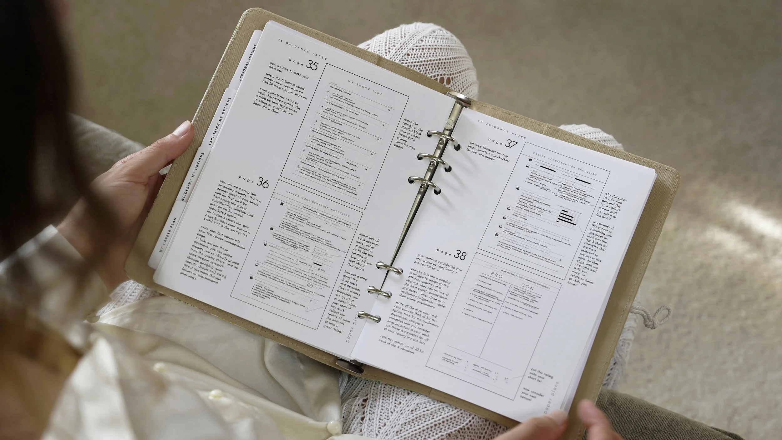 1. Personal insight: In the first section you will work through valuable exercises to gain an inventory of insight into what you suit and want. Culminating in a framework for your 'ideal career'.